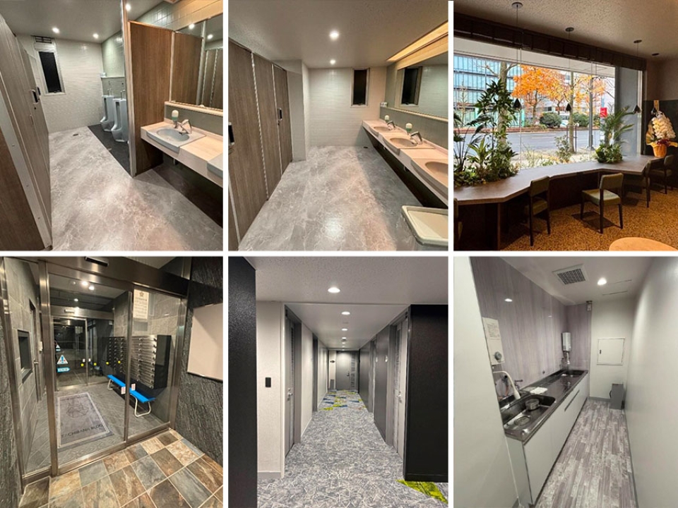 | 備考 | 即入居可! 2024年12月 リニューアル工事完了!! (内容:外壁、共用部ラウンジ、エントランス、共用廊下、専有部内等) 1階に便利な共用ラウンジがあります。 契約形態:普通賃貸借契約(2年) 保証会社:当社指定の家賃保証会社にご加入頂く場合がございます。 初回保証料:賃料の1.5ヶ月分 / 更新料︓賃料の10%(1年毎) 開放時間:エントランス:全日8:00〜20:00 ラウンジ:利用可能時間 全日8:00〜20:00(無料Wi-Fi、コンセント導入済) 警備:全区画に機械警備導入済 駐車場サイズ:L=5,000㎜ W=1,850㎜ H=1,550㎜ 最大重量1,500㎏ 水光熱費:専有部使用料はビル側より請求 その他:鍵交換費用:実費負担(初回2本は無償貸与)/ 館銘板作成費用:実費負担 ※都度見積 / 給湯室:各階フロア / 全区画LED導入済 / 2~6階全区画OAフロア ※耐震補強済 |