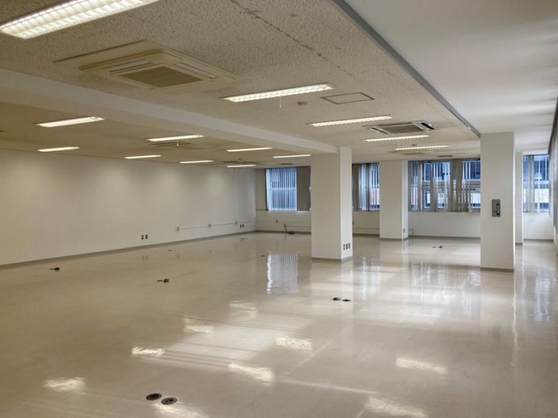 2面全体に窓があり、採光に優れた明るく開放的な空間です。 廊下に出ると直ぐにエレベーターや給湯室、トイレもあり、設備面でも魅力のある物件となります。
