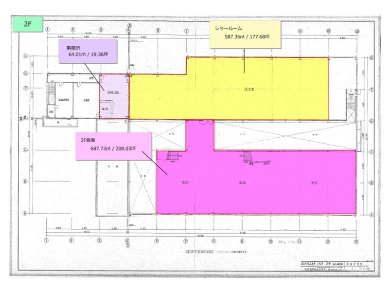 倉庫・事務所・ショールームの図面です。
