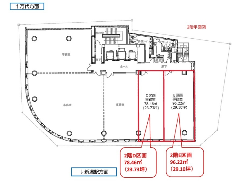 | 備考 | ≪即入居可能な2階のオフィス区画!≫ 契約形態:普通賃貸借契約 契約期間:5年間 仲介手数料:月額賃料1ヶ月分 構造:免震構造 床仕上:タイルカーペット 床仕様:OAフロア(H=100mm) ・1Fにスターバックスコーヒー、8Fにコンサートホール、レストランがございます。 ・ダブルスキン構造のサッシを採用。 ・全室南東~南西向き採光、電動ブラインドを採用。 ・東京~新潟間新幹線は最短で1時間半です。 |